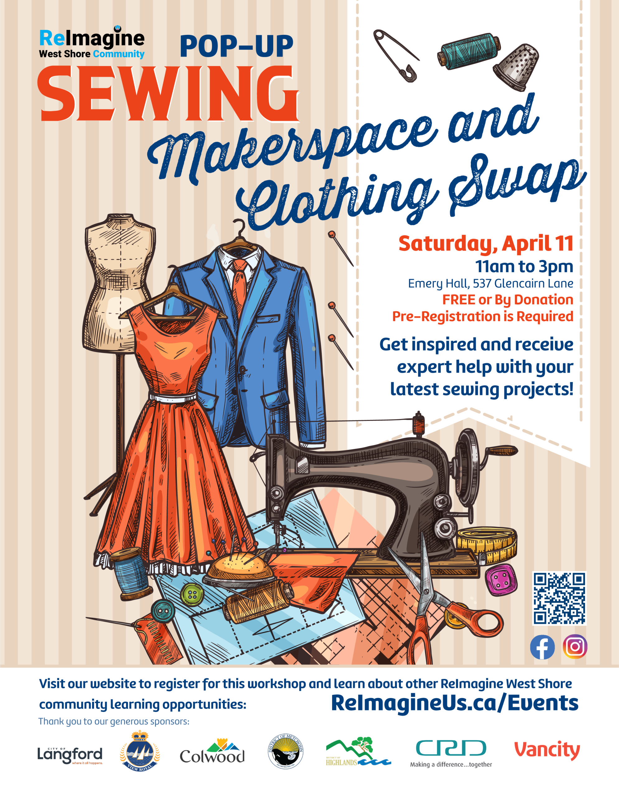 Join Heather Ireland (tailor, upcycler and costume-designer) of Langford-based Mythrose for a fantastic opportunity to get some expert help, learn new techniques, and connect with fellow sewing enthusiasts. This workshop is intended for folks who are already working on a project, NOT for people just learning how to sew. Heather will offer valuable guidance, answer your questions and help you tackle your sewing projects … and she’ll bring along a few sewing machines, a serger and other equipment!